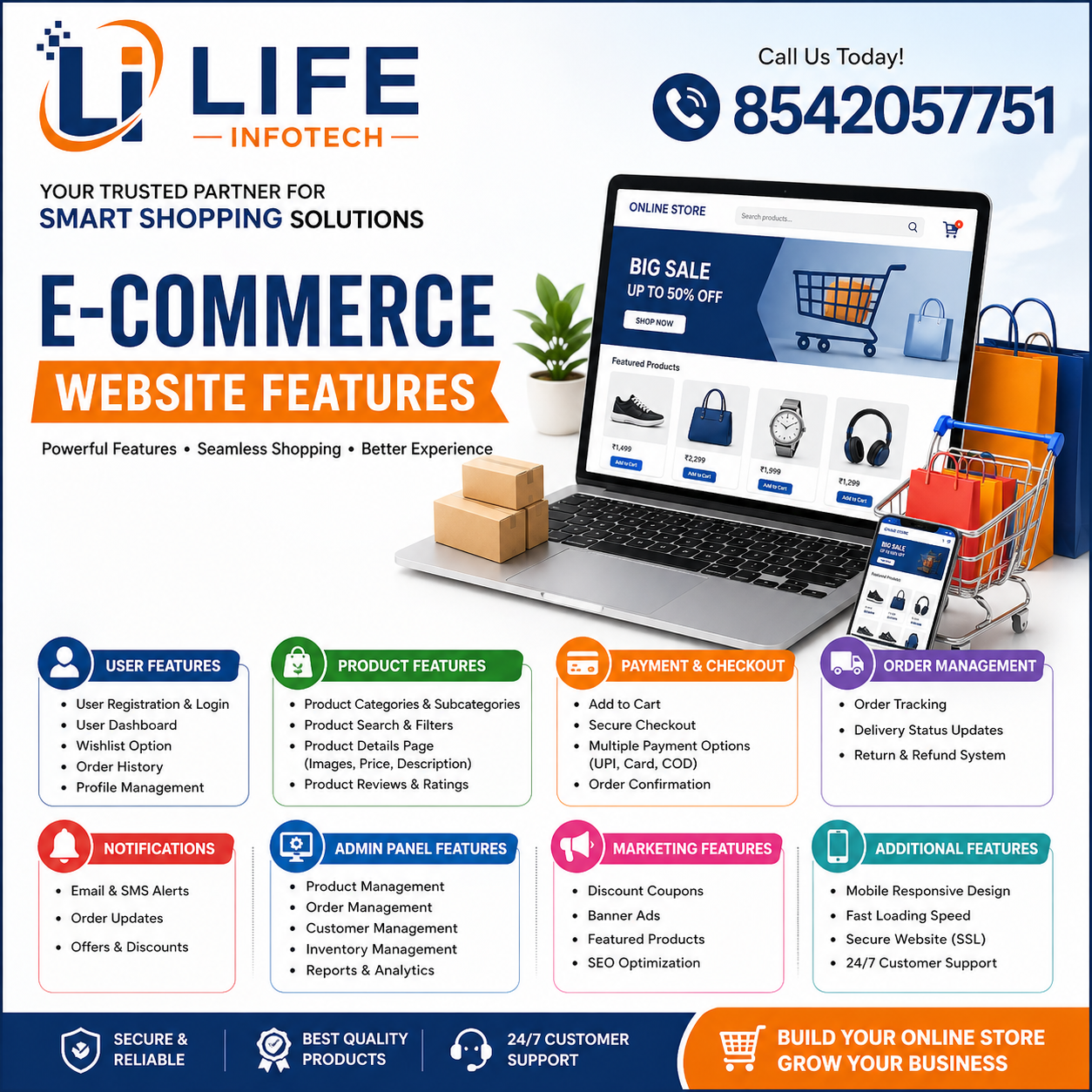 Life Infotech is a leading Website and Software Development Company, delivering cutting-edge IT solutions tailored to businesses of all sizes. Since 2011, we’ve been empowering organizations with innovative digital products, including websites, custom software, and mobile applications that are secure, scalable, and future-ready. Our mission is to deliver quality-driven, user-centric, and result-oriented digital solutions that align with client goals and enhance business value.